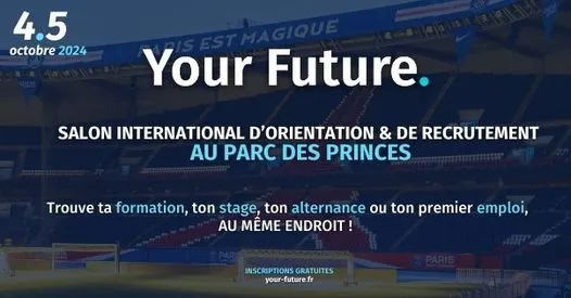 Destiné aux 17-24 ans, le salon d'orientation et de recrutement Your Future est organisé, pour sa 3e édition ces 3 et 4 octobre 2025 au parc des Princes, à Paris (16e). Avec la participation de l'agence régionale de l'orientation Oriane (voir plus bas).