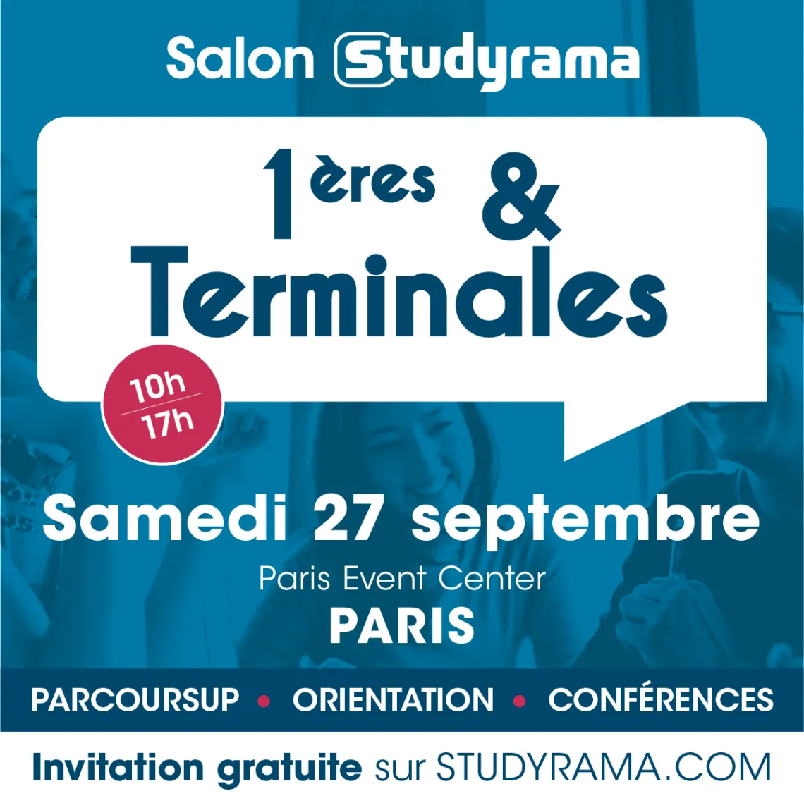 Orientation Studyrama propose, avec le soutien de la Région, un rendez-vous 4-en-1 ce 27 septembre 2025 à Paris Event Center : 1 salon 1res et terminales, 1 salon parents, 1 salon études médicales et 1 salon formations internationales.