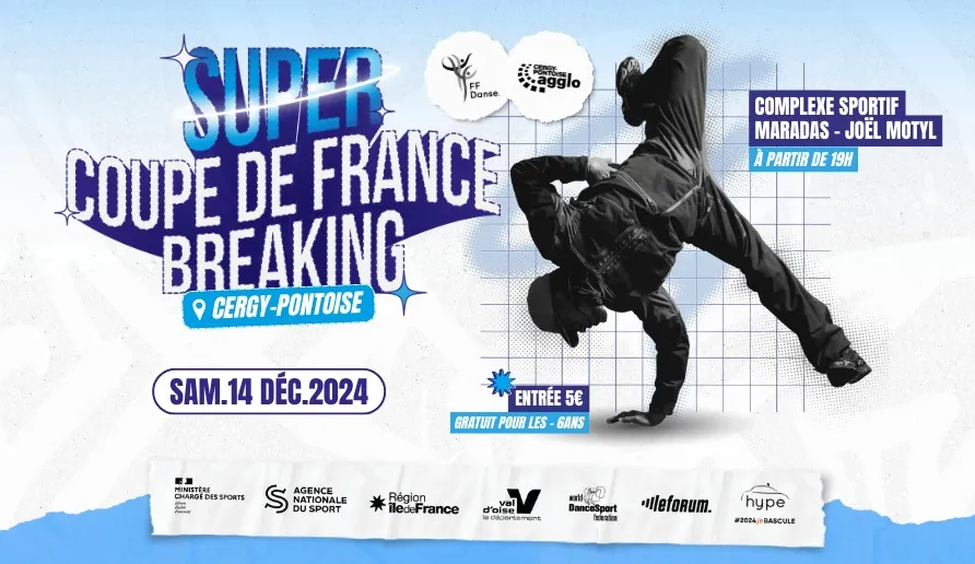 Envie de découvrir les meilleurs danseurs de breaking de France ? Rendez-vous au complexe sportif Maradas - Joël-Motyl de Pontoise (95), ce 14 décembre 2024 dès 19h, pour la Supercoupe de France de breaking, un événement soutenu par la Région.