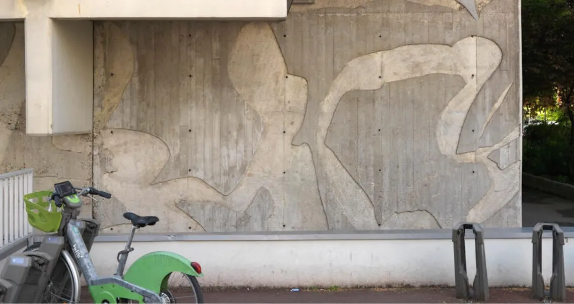 Enfin, la façade sur la rue du Stade-Nautique est ornée d’un bas-relief sculpté dans le béton de Paul Foujino, artiste collaborant régulièrement avec Paul Chemetov. En effet, l’AUA apprécie particulièrement le concept de synthèse des arts et sollicite l’intervention d’artistes. Il s’agit également d’une composante importante pour la municipalité qui, sans consulter les architectes, commande une mosaïque à Roland Brice, élève de Fernand Léger, en 1974. Cependant, dès les années 1980, cette mosaïque se détache d’elle-même à la suite d’intempéries.