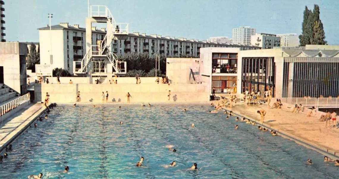 Dans les années 1960, alors que la France accuse un net retard en la matière, les collectivités s’équipement massivement de piscines afin de populariser l’apprentissage de la natation mais aussi dans un objectif de loisirs populaires. La commune de Villejuif (94) décide ainsi la construction d’une piscine et achète en 1966 des terres agricoles situées au sud de la ville dans les quartiers de logements neufs, face au groupe scolaire et au stade Karl-Marx, afin d’y compléter l’offre sportive.
