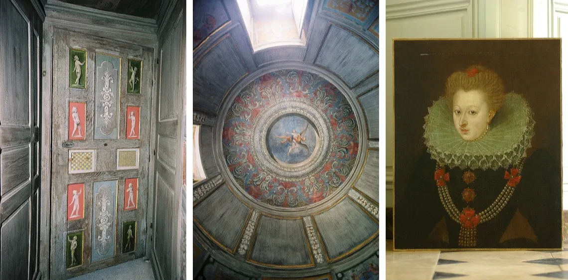 À découvrir aussi lors de la visite des cabinets peints : une étonnante cachette aménagée dans l’une des parois. Louis de Mornay y aurait dissimulé un cousin protestant pourchassé par les catholiques.