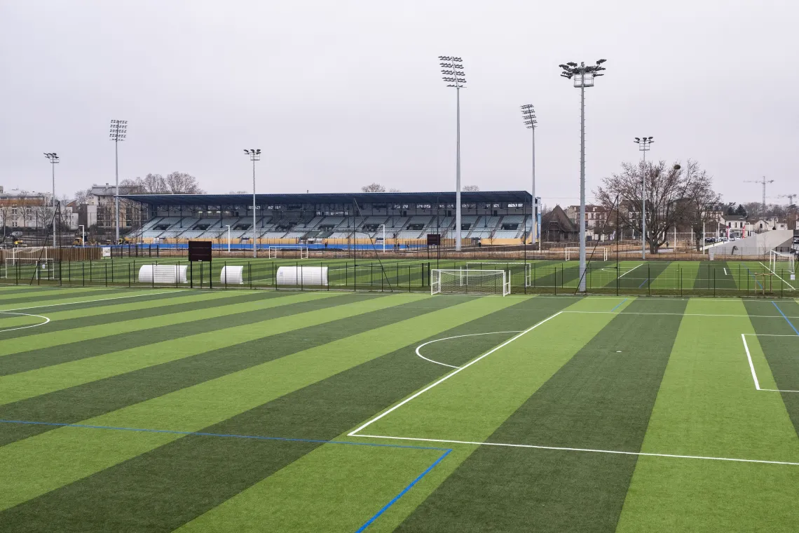 - 2 terrains synthétiques de hockey avec une tribune de 1 000 places,