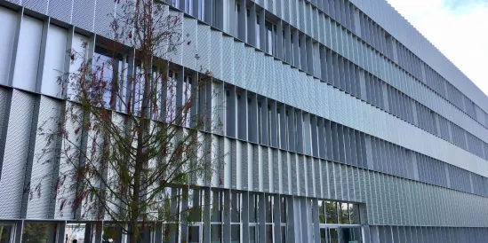 Le nouveau bâtiment d’enseignement du pôle technologique services et de production abrite des plateaux techniques et le centre de documentation et d’information (CDI). Moderne compact et fonctionnel, il se distingue par sa résille de métal perforée dans les étages supérieurs. Le jour de la rentrée 2019, les salles spacieuses et lumineuses étaient prêtes pour accueillir les élèves.