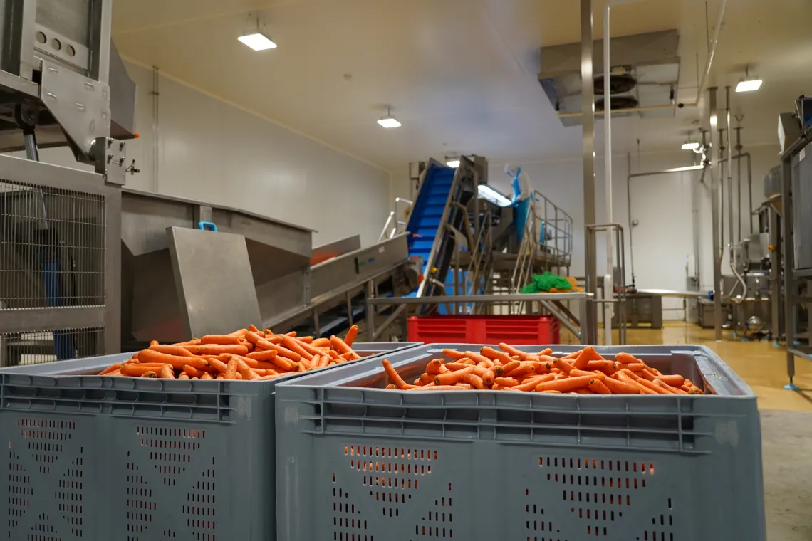 Une soixantaine de salariés travaille pour Approv’Halles. Une partie est affectée ce matin-là à la ligne des légumes racines. Des tonnes de carottes à laver, à éplucher, à tailler en rondelles et à conditionner, puis pour certaines à surgeler. À côté, deux autres lignes sont réservées aux végétaux feuillus comme le chou, ainsi qu’aux haricots et aux petits pois.