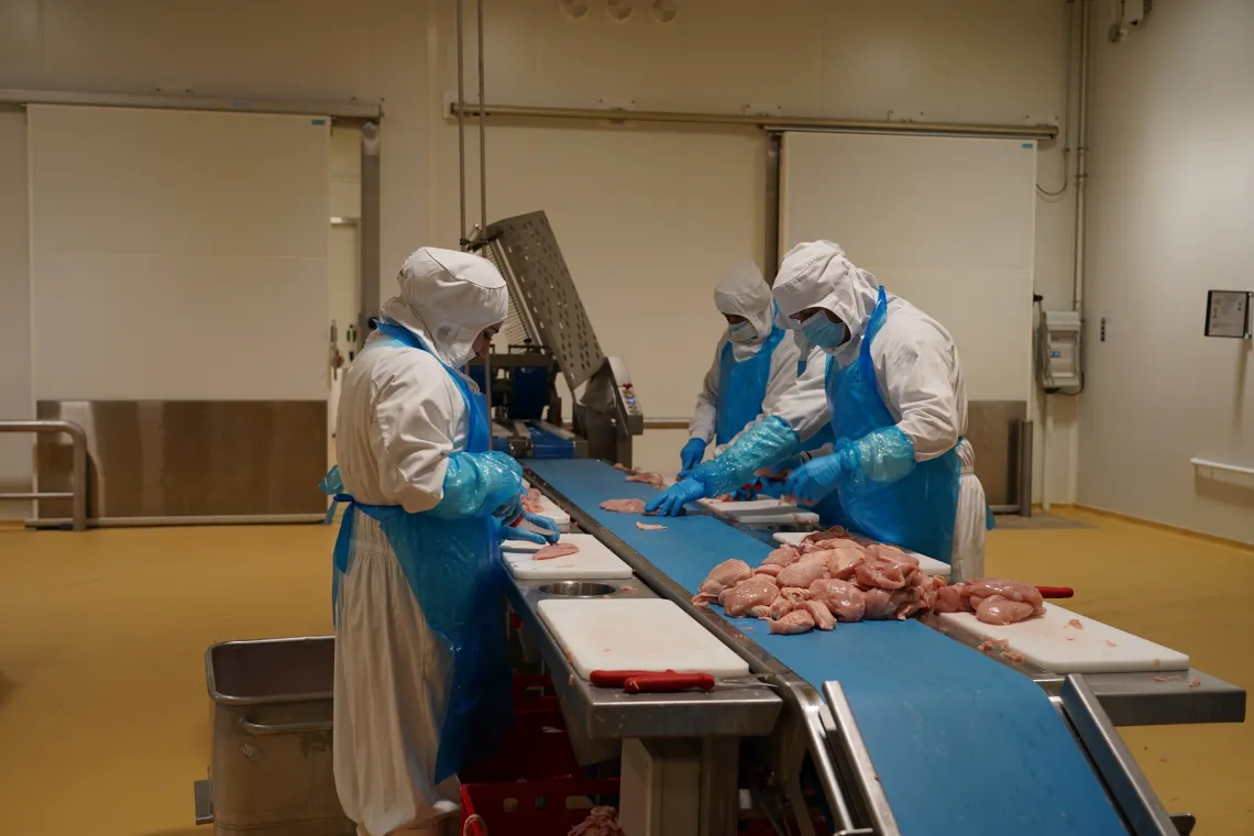 Au même moment, dans un autre atelier, plus de 5 tonnes de poulets vont être découpés dans la journée. Les filets, débités à la main, pourront être livrés dès le lendemain aux collèges et aux lycées.
