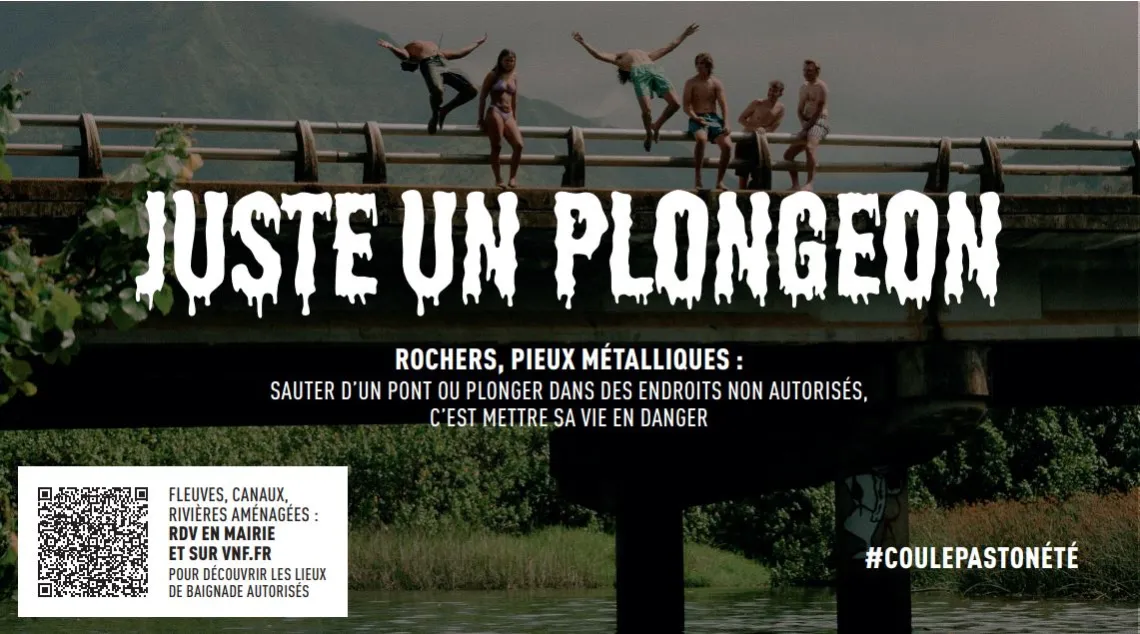 Afin de sensibiliser les 12–25 ans, qui sont les plus touchés par les accidents de baignade en eaux fluviales, Voies navigables de France (VNF) lance #CoulePasTonÉté, une campagne d’information sur les dangers inhérents à ces pratiques qui se multiplient l’été.