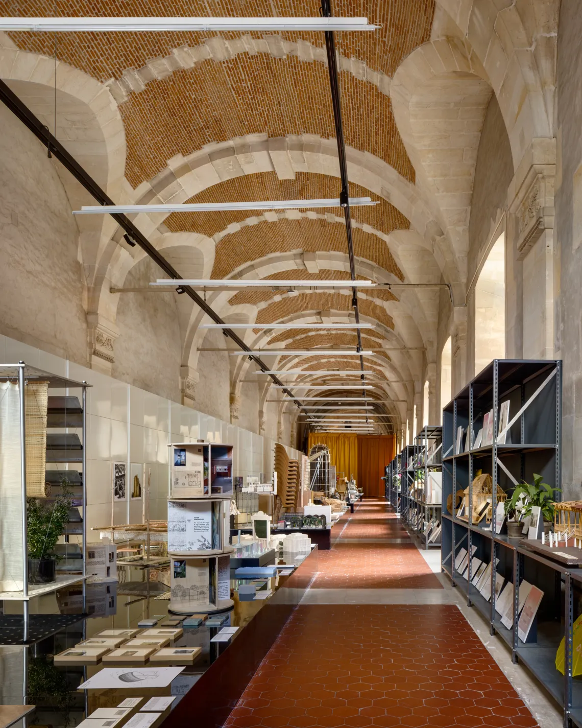 Nous ne voulions pas tomber dans le storytelling de fin du monde, mais plutôt adopter un discours positif et axé sur les solutions. La nef est scindée en 3 sections : le passé, le présent, le futur. Chaque temporalité est structurée autour des 4 éléments – la terre, le feu, l’eau et l’air – pour regrouper problèmes et propositions architecturales. Le passé prend la forme d’un cabinet de curiosités mêlant géologie, histoire et culture du Sud. Le présent présente les œuvres d’architectes contemporains issus de climats chauds. Enfin, le futur dévoile les propositions de 15 architectes primés, imaginant un Paris soumis à des chaleurs et des précipitations extrêmes.