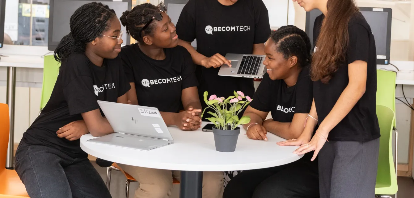 Nakia T. : 4 programmes sont proposés. « Jump in tech » initie les filles de 14 à 17 ans au numérique l’été pendant un stage intensif. C’est en quelque sorte la première brique. Le programme « AMbassadrices » assure ensuite un suivi de long terme des participantes de « Jump in tech ». Puis, il y a « Together in tech », qui s’adresse aux étudiantes en informatique ou numérique, qui sont bien souvent minoritaires dans leur classe. Becomtech les accompagne dans leurs initiatives en faveur de l’égalité, les outille pour éviter le décrochage scolaire et les sensibilise aussi aux violences sexistes et sexuelles. Enfin, le programme « Becomleader » accompagne les Ambassadrices dans leurs projets d’intrapreneuriat, en développant leurs compétences transversales et leur leadership : de la gestion de projet à la levée de fonds, grâce à un coaching personnalisé et un partage de savoirs entre pairs.