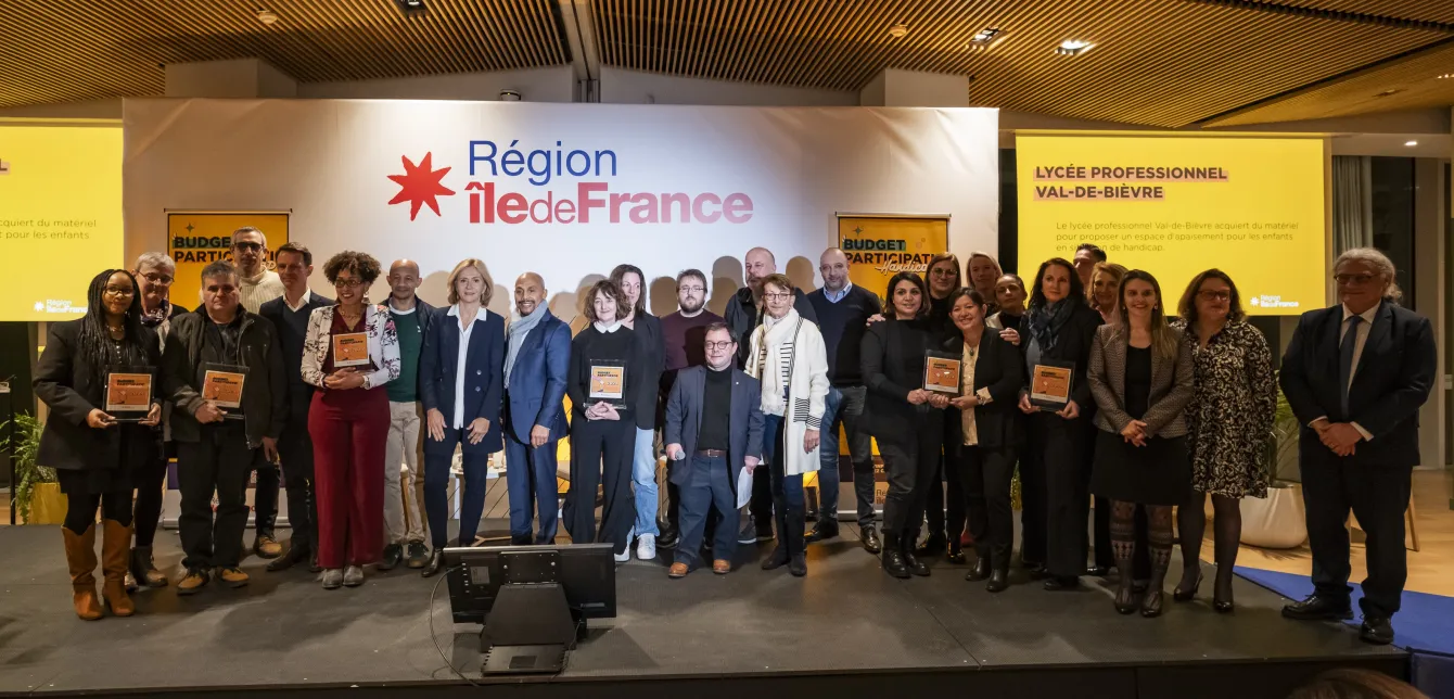 Inspiré de son Budget participatif écologique créé en 2020, la Région a lancé en mars 2024 la 1re édition de son Budget participatif handicap afin de permettre à tous les Franciliens de devenir acteurs de sa politique solidaire. Les votes exprimés du 6 juillet au 8 septembre 2024 ont permis de retenir 130 projets dans 7 grandes thématiques qui seront financés par la Région.
