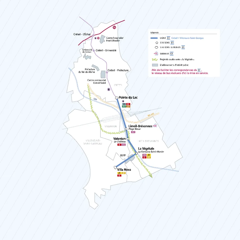 transports En décembre, le Val-de-Marne accueillera le tout 1er téléphérique urbain d’Île-de-France. Long de 4,5 km, le Câble C1 reliera en 18 minutes Créteil à Villeneuve-Saint-Georges, désenclavant plusieurs quartiers et offrant une alternative aux bus actuels, plus rapide, électrique et accessible.
