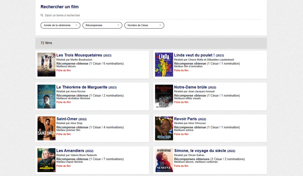 Depuis la création des aides au cinéma de la Région en 2001 (dont le budget annuel s'est progressivement accru depuis 2017), 74 films bénéficiaires ont été récompensés aux César.