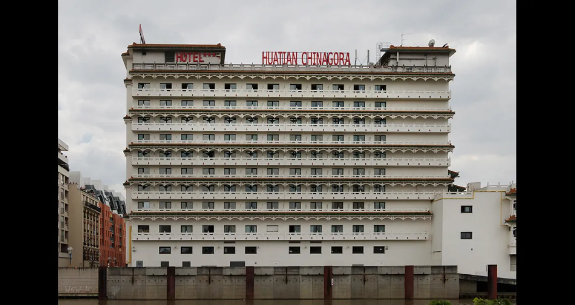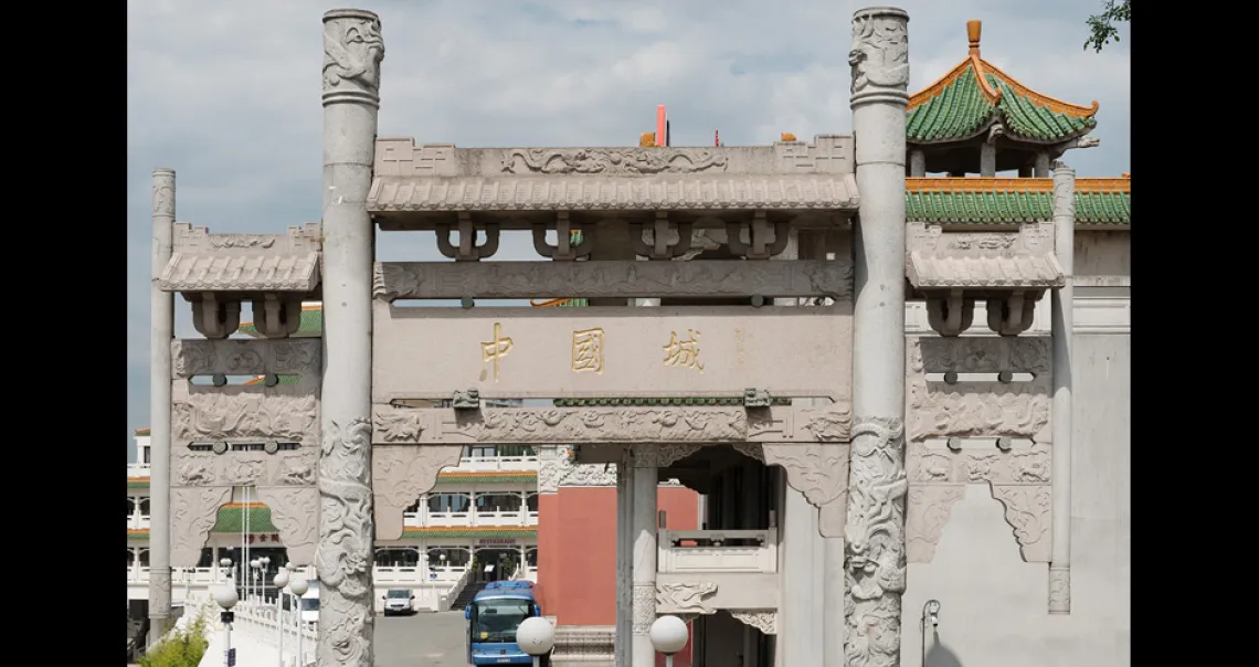 Inauguré en 1992, Chinagora est situé sur le site de l’usine Chelle détruite à la fin des années 1980. C’est l’œuvre de l’architecte cantonais Liang Kunhao. L’ensemble se compose de cinq bâtiments et d’un jardin intérieur, le jardin des neuf dragons, qui symbolise le centre du monde. Le projet initial abritait une galerie commerçante, un palais des expositions, des restaurants et un hôtel.