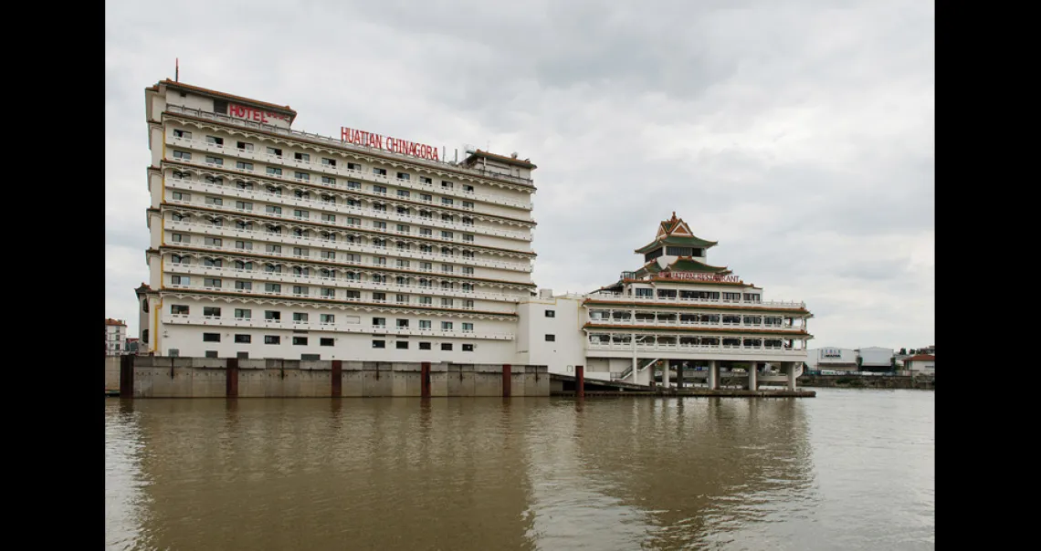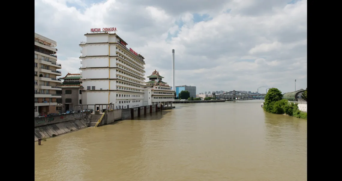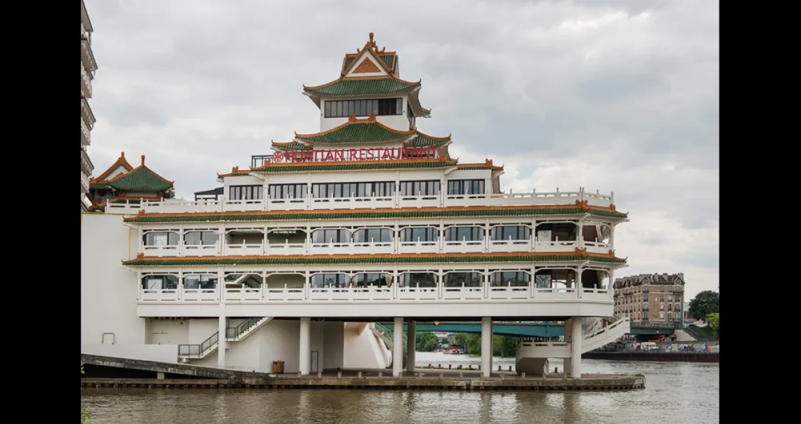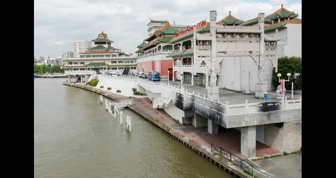 patrimoine Au confluent de la Seine et de la Marne, Chinagora, véritable pagode flottante s’inspire de l’architecture de la Cité interdite de Pékin.