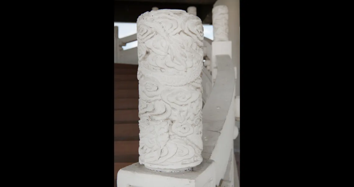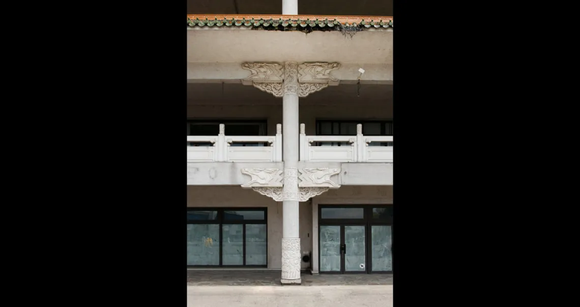 Le dessin du bâtiment reprend les canons de l’architecture chinoise et les pouvoirs magiques qui lui sont traditionnellement associés. Deux lions de pierre gardent l’entrée. La structure est surélevée pour la protéger des mauvais esprits rampants, de même que les toits relevés prémunissent le bâtiment contre les esprits volants. Les dragons quant à eux préservent l’édifice des incendies.