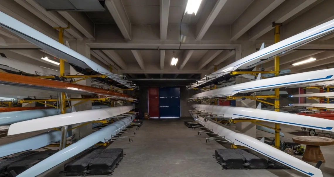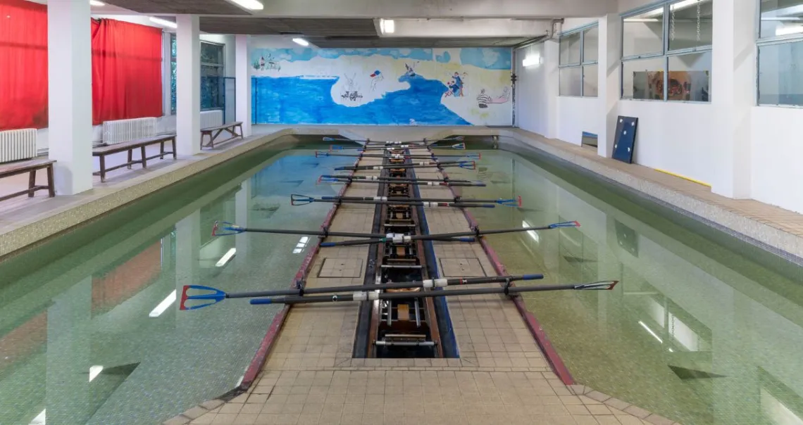 Le Rowing-Club de Saint-Ouen (93) est né en 1865, à Courbevoie, de la fusion de la Société des Régates Parisiennes et du Paris Rowing-Club ; c’est le plus ancien club d’aviron d’Île-de-France. En 1970, il intègre le complexe sportif développé à Saint-Ouen, sur la pointe de l’île Saint-Denis. Le bâtiment, construit par les architectes André Rodier et Fernand Dumarcher, se décompose en deux parties : un club-house sur trois niveaux, qui constitue les espaces d’accueil du public et des licenciés ainsi que les bureaux du club, et un sous-sol dédié au garage d’une centaine de bateaux, doté d’un tank à ramer de huit places et d’une salle de gymnastique, s’ouvrant sur une esplanade aménagée pour la sortie des embarcations. Un système de portique à treuil destiné à la mise à l’eau des yoles complète cet ensemble. La qualité architecturale du Rowing-Club est doublée de la conservation par le club d’objets anciens et de quelques bateaux du début du XXe siècle.