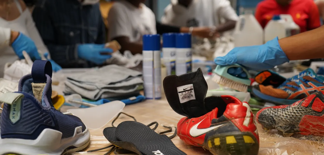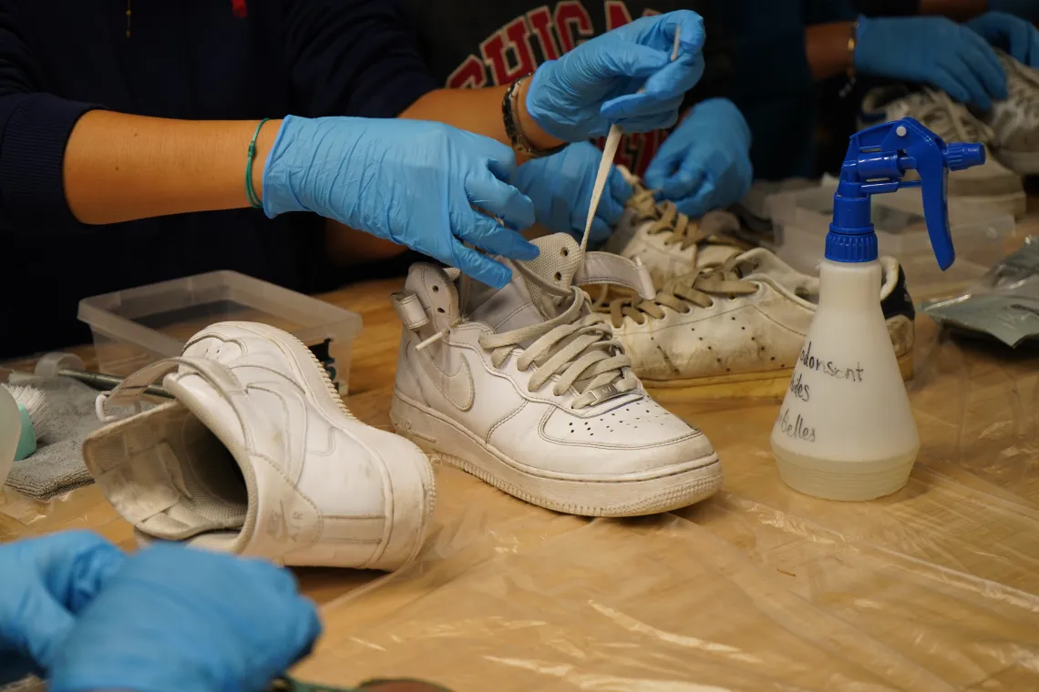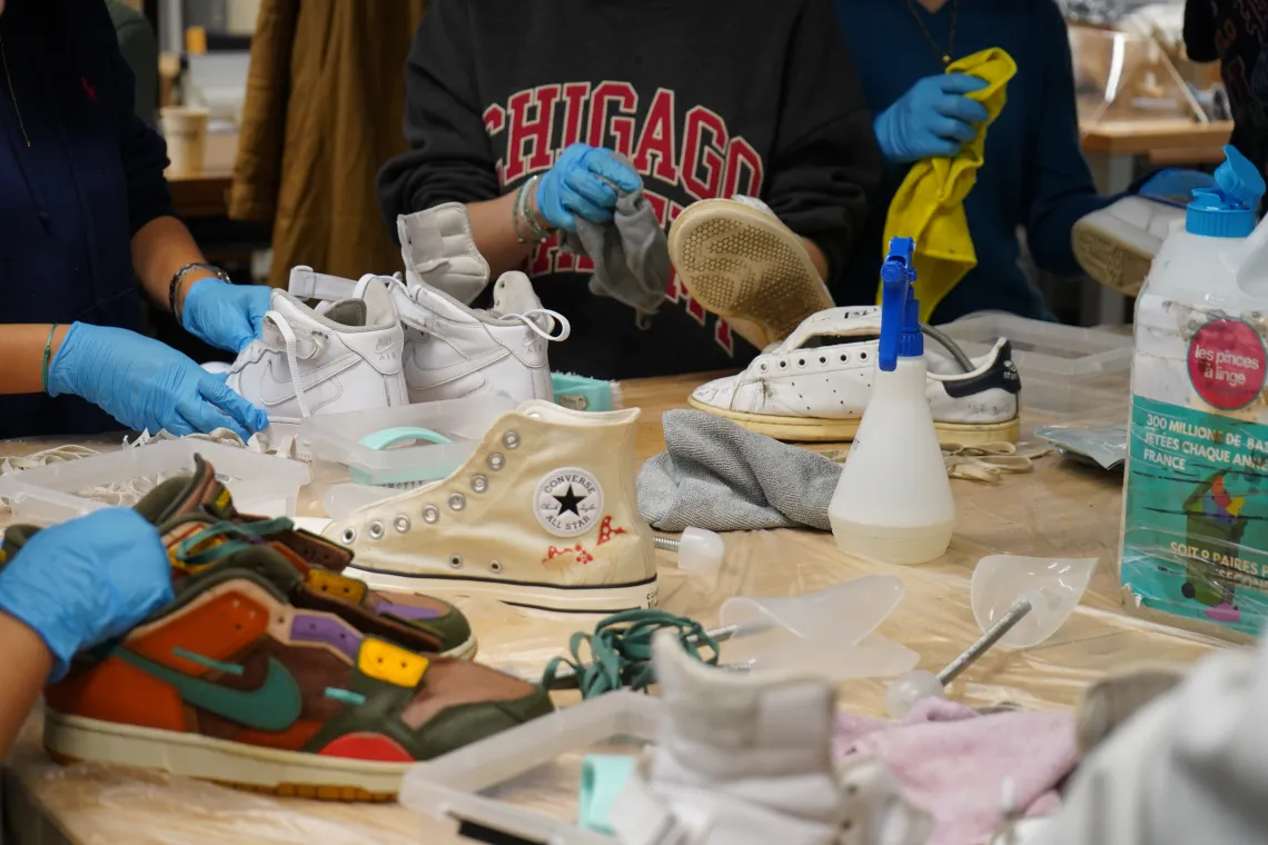 En marge des modalités du Défi Refashion, les dizaines de lycéens présents au Fashion Green Hub ont pu profiter de 3 ateliers autour de la réparation des textiles et de l’éco-conception, avec notamment un « bar à basket » animé par l’association Les pinces à linges spécialisée dans le reconditionnement des baskets qui aura captivé le jeune public du jour et dans lequel ils ont appris trucs et astuces pour nettoyer, réparer leurs chaussures et leur donner une seconde vie.