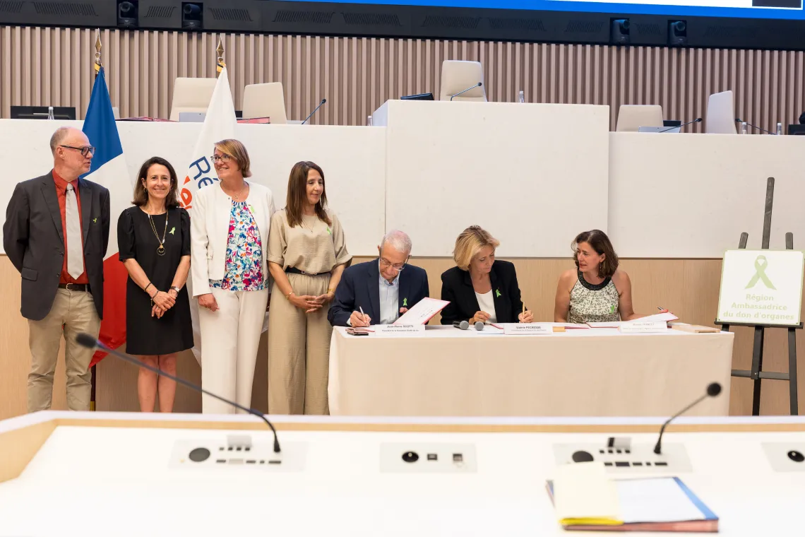 En soutien à la promotion du don d’organes, et en lien avec ces acteurs, la Région Île-de-France est devenue la 1re « Région ambassadrice du don d'organes » en signant la charte avec le Collectif Greffes+, en présence de Jean-Pierre Scotti, Président de la Fondation Greffe de Vie, et de l’Agence de la Biomédecine avec Marine Jeantet, Directrice générale, le 18 juin 2025.