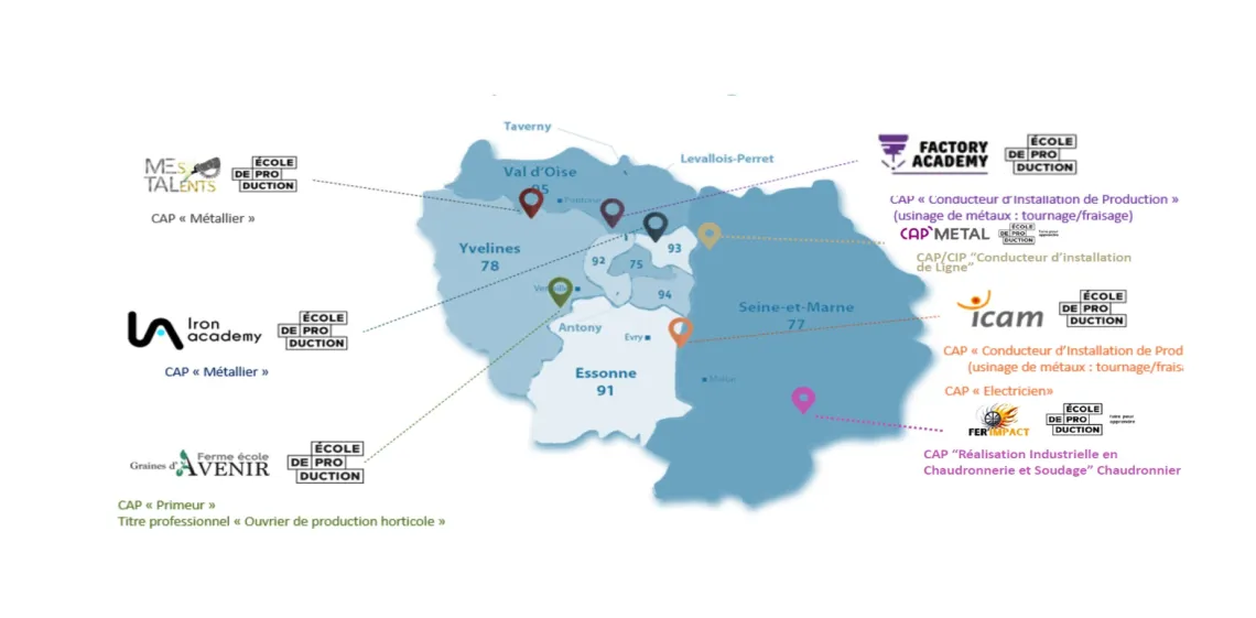 La Région Île-de-France, en partenariat avec la Fédération nationale des écoles de production, a lancé, le 15 octobre 2025, un appel à projets pour faire émerger de nouvelles écoles de production sur le territoire.