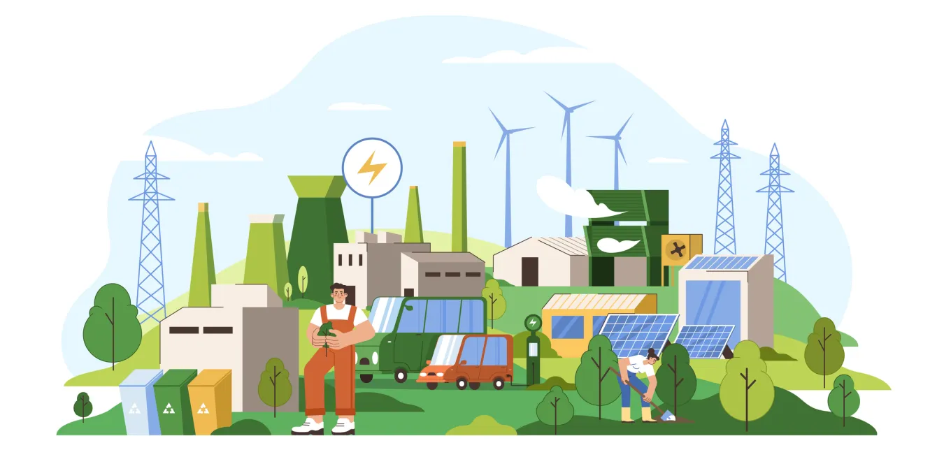 - Sobriété et énergie décarbonée : bâtiments à énergie positive, smart grids, chaleur renouvelable.