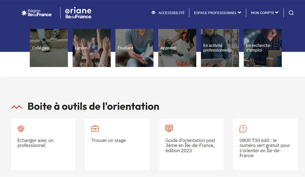 Vitrine de l'Agence régionale de la promesse républicaine et de l'orientation, Oriane.info est le site qui accompagne tous les Franciliens de 12 à plus de 60 ans dans leurs projets professionnels.