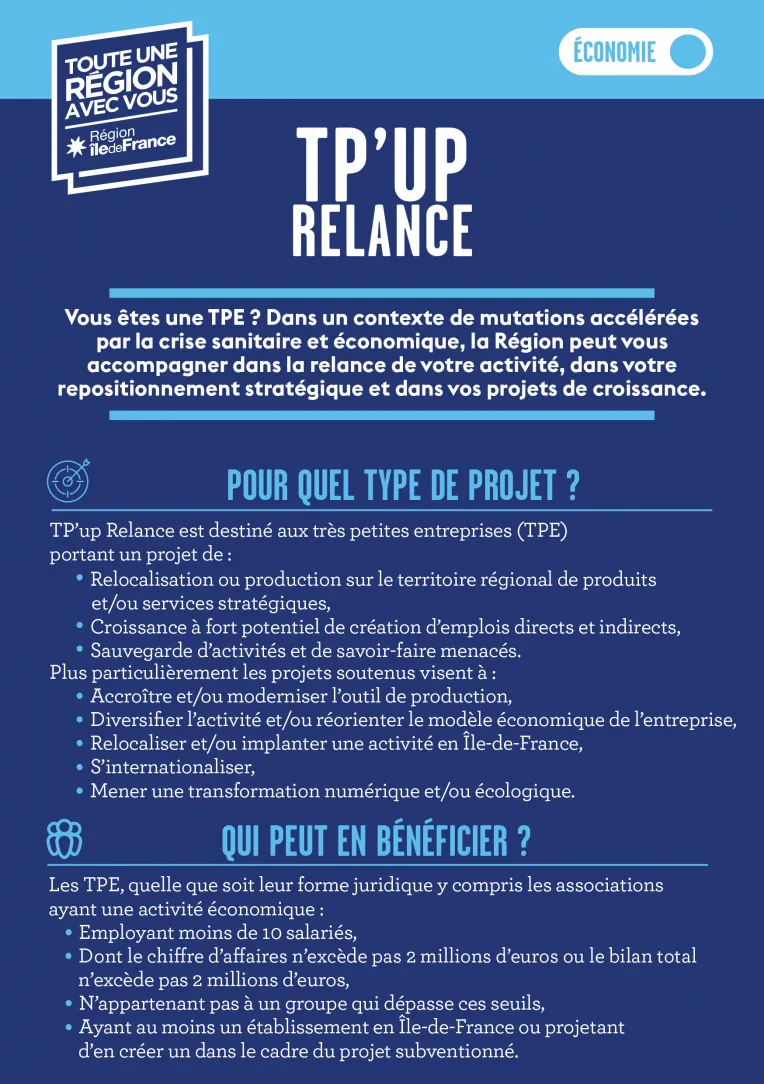 - Les différentes aides de la gamme « UP », dont TP’up et PM’up Relance,