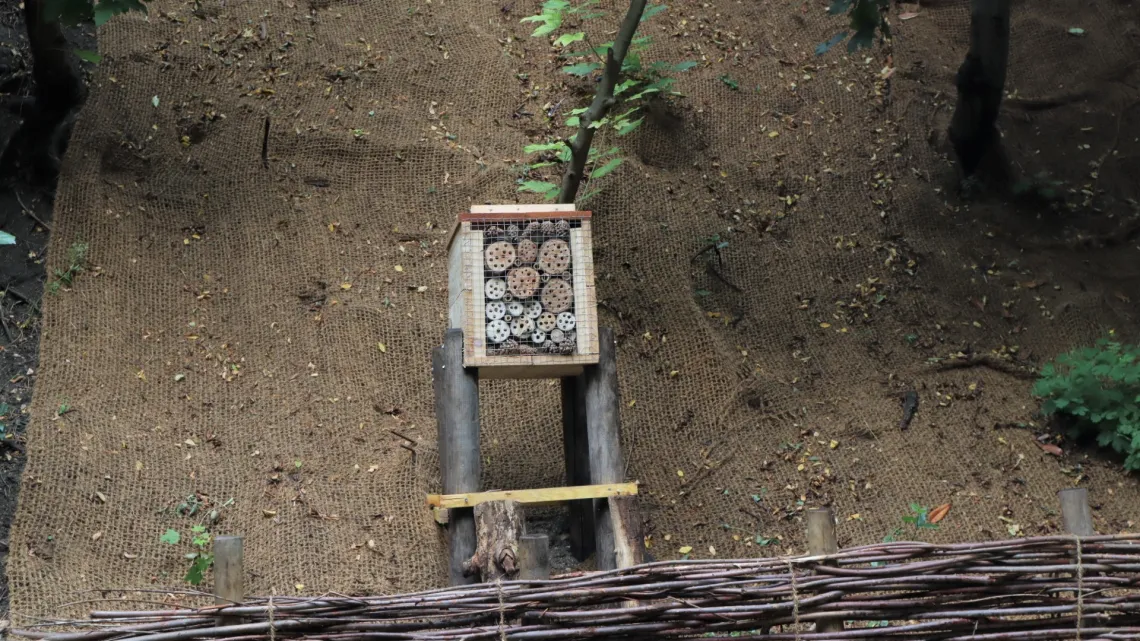 Philippe Billot : Pour restaurer les talus dégradés, nous utilisons de la toile de coco. Comme cela il n’y a plus d’effondrement de talus et la végétation peut s’y ancrer. Cela permet à la faune et la flore de se réinstaller dans des zones qui ont été dégradées et abandonnées. Nous avons également créé des gîtes pour les petits animaux sauvages afin de faire revenir certaines espèces : hérisson, fouines, chiroptères, écureuils, mais aussi des ruches à bourdons ou à abeilles solitaires. Les gîtes sont sécurisés dans des espaces clos pour protéger les espèces en déclin, en danger ou dérangées par les animaux domestiques qui viennent sur le site malgré l’interdiction. Nous allons également garder certains des tunnels fermés au public pour préserver l’habitat de pipistrelles, des chauves-souris qui se font rares et qui sont de véritables alliées contre les moustiques et autres petits insectes volants.