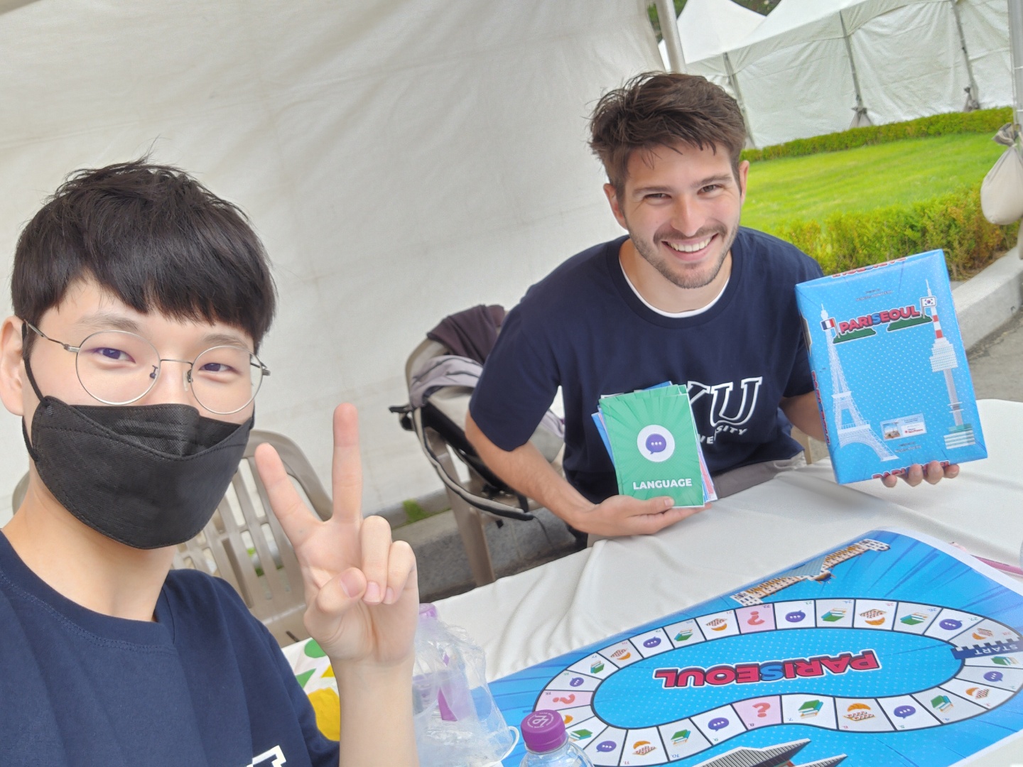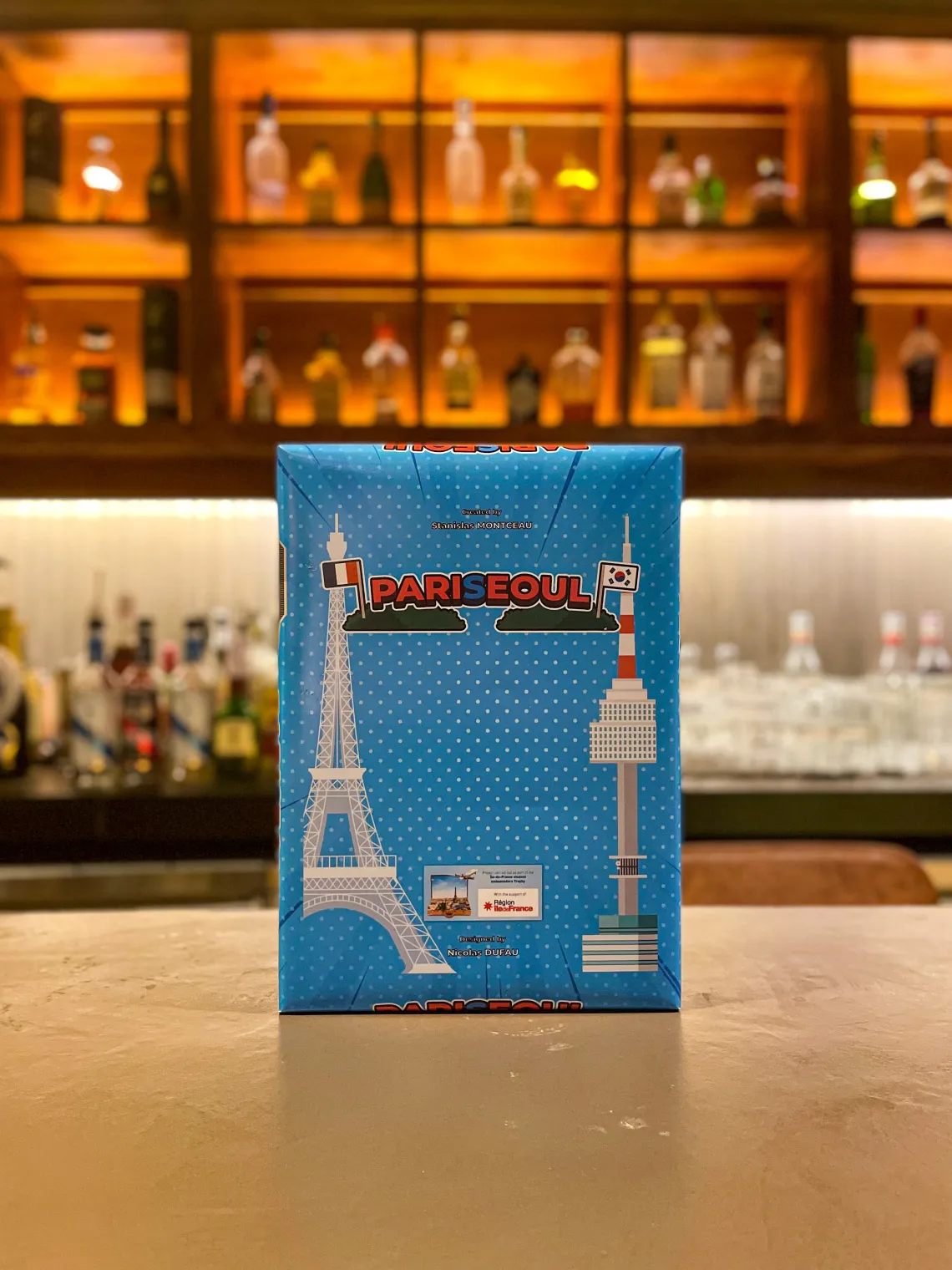 S.M. : PariSeoul est un mix entre un « Trivial Pursuit » et un jeu de l’oie. Chaque joueur lance un dé pour faire avancer son pion sur le plateau qui reprend la forme de la Seine et de la Han river. Il peut tomber sur 4 cases : culture, nourriture, langage et mystère. Chaque thème est abordé via des questions, rédigées en anglais et en coréen, pour lesquelles 3 choix sont proposés. Chaque bonne réponse rapporte 1 point. À la fin de la partie, le joueur ayant le plus de bonnes réponses gagne !