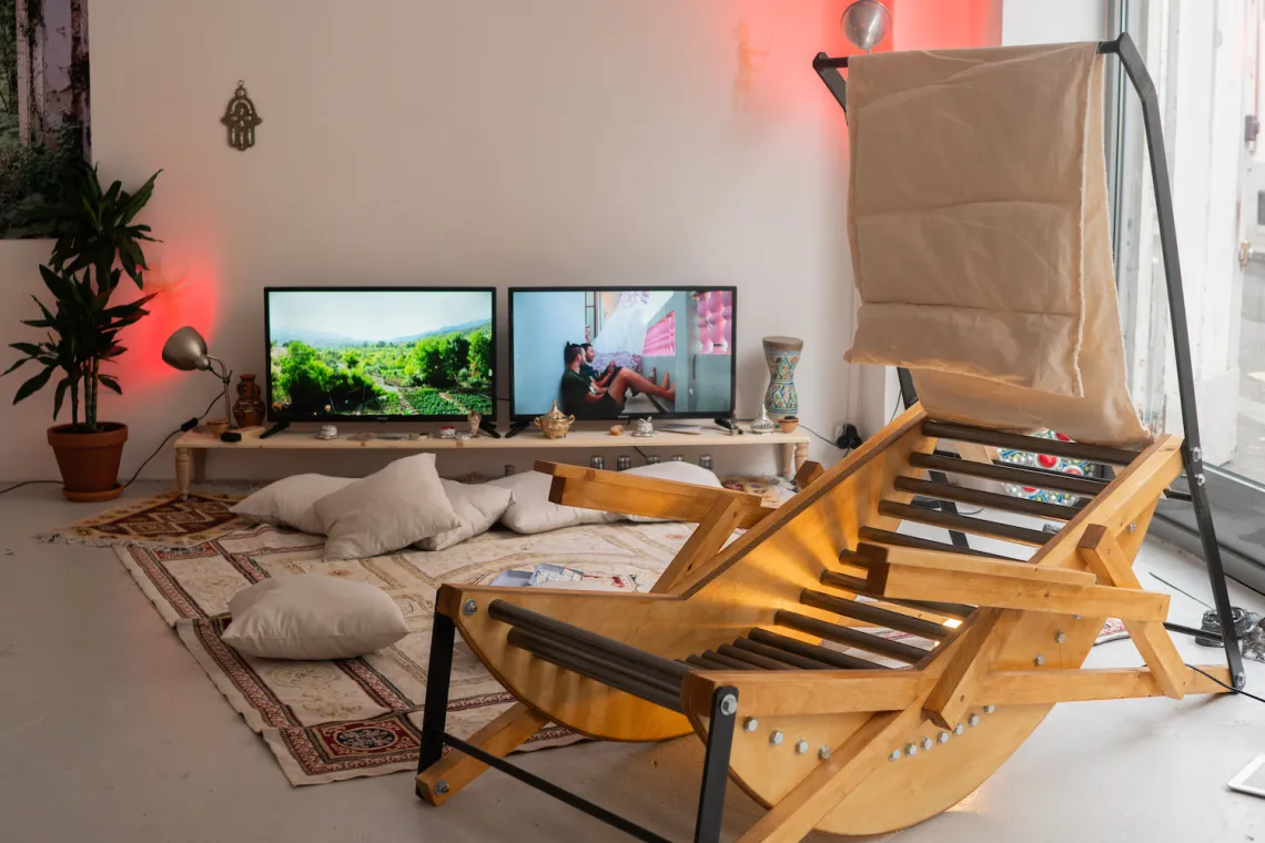 Les créations de L. Camus-Govoroff, Nina Chalot, Lucie Douriaud, Camille Juthier, Jacques Ligot, Winnie Mo Rielly et Gabriel Moraes Aquino, tous lauréats de FoRTE #5, est à retrouver au premier étage du bâtiment des Réserves du Frac Île-de-France.