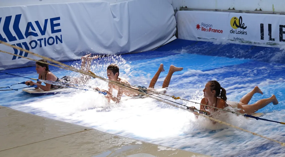La base regorge d’activités réservables pour tous les âges et toutes les envies. Padel, tennis, minigolf, piscine… et même surf ou bodysurf en salle. « Avec notre centre aéré, j’aime bien initier les jeunes au bodysurf : ça travaille l’équilibre et la proprioception », raconte Roxane. J’assiste à une séance où quatre jeunes s’essayent et tentent tant bien que mal à rester sur leur planche. Je découvre que les encadrants peuvent régler la puissance de l’eau… ou s’amuser à tirer discrètement sur la ficelle retenant la planche, histoire de tester la stabilité des plus téméraires.