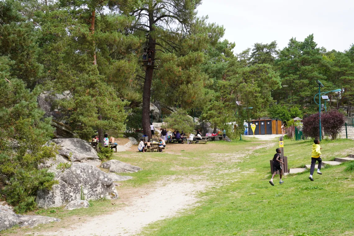 11h. La base de loisirs de Buthiers s’anime peu à peu. Sur le parking, des bus s’arrêtent et déversent leurs groupes d’enfants. Des familles et des amis empruntent le chemin caillouteux et sinueux qui s’enfonce dans la forêt de Fontainebleau, où se cachent les nombreuses installations et activités proposées par la base. Le cadre se prête idéalement à une journée de détente et d’aventure.