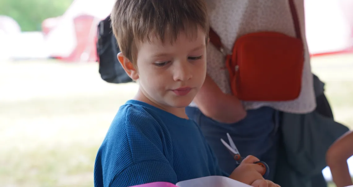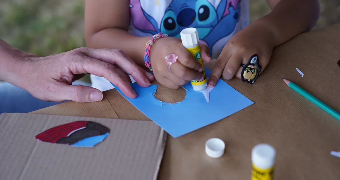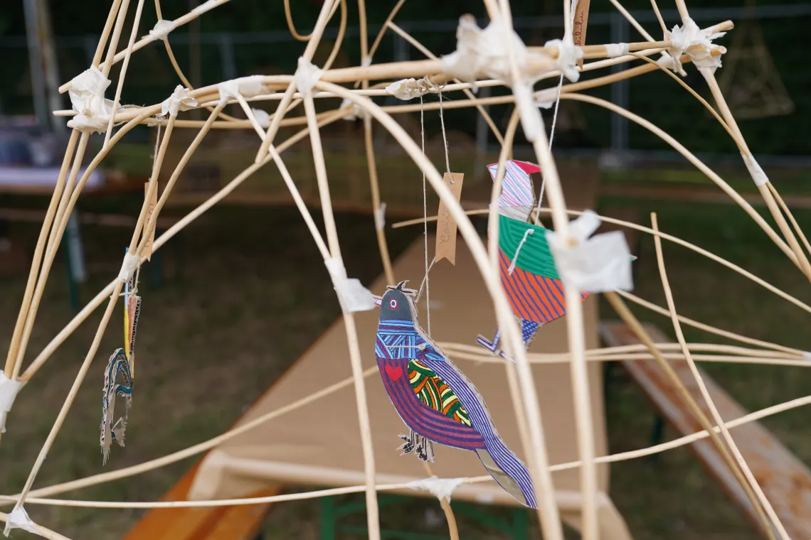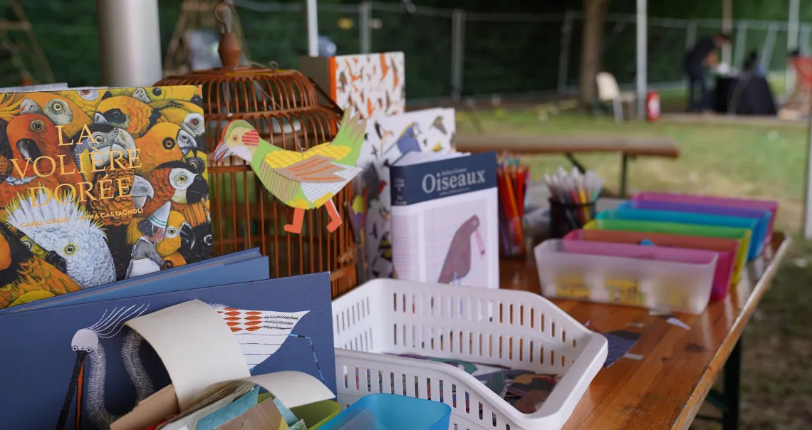Plus loin, la plasticienne Camille Laouénan anime un atelier de confection d’oiseaux en papier. Le calme règne, les enfants concentrés colorient, coupent et collent délicatement leurs créations.