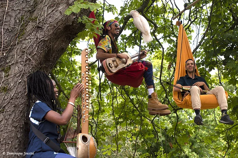 Des créatures, venues des quatre coins du monde, proposeront un voyage musical et chorégraphique au cœur de la nature. Instruments féeriques, dryades cachées, insectes électroniques… chaque rencontre est une surprise ! Une parenthèse enchantée, entre réel et merveilleux, à vivre en famille, entre amis ou en solitaire.