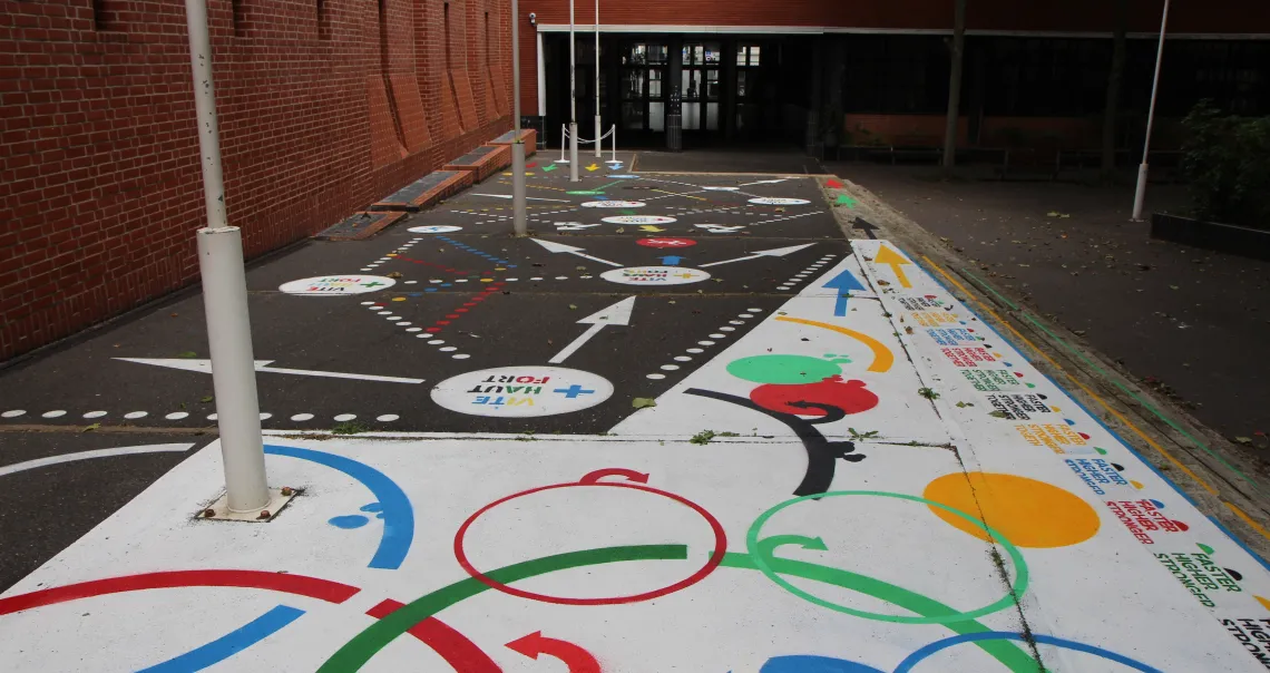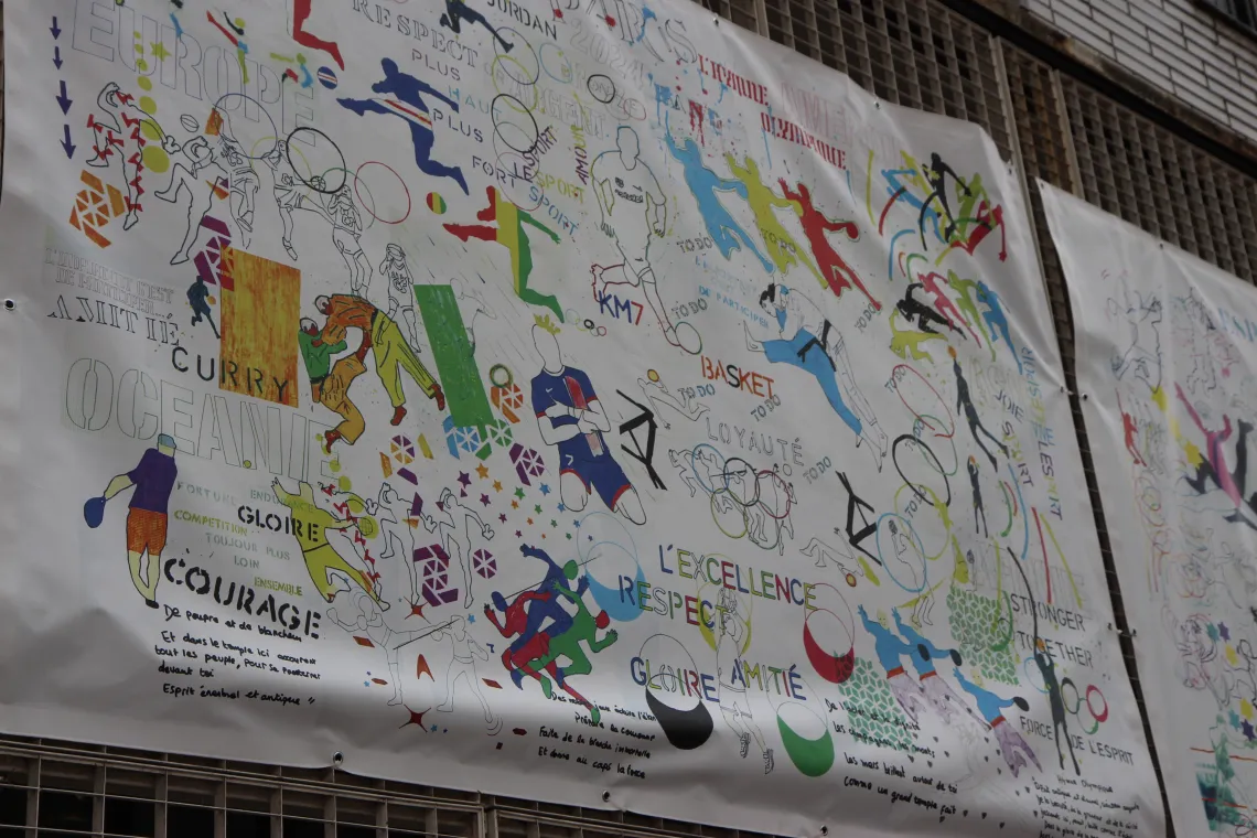S. D. : Les projets pédagogiques mis en place depuis 2 ans étaient orientés sur les Jeux olympiques. Donc pour nos élèves, c'était chouette ! Nous espérons ensuite un héritage car en plus de tous les projets déjà cités, nous avons mis en place des projets artistiques. Une classe de seconde générale a réalisé une fresque des Jeux sur le mur du gymnase, ceux des filières professionnelles ont crée des bâches sur la façade pour les Jeux. Les élèves ont mené les projets de A à Z. Dans la cour, toutes les classes d’enseignement professionnel ont travaillé sur un parterre déstructuré aux couleurs et aux formes olympiques avec la devise olympique. Cette dynamique autour des Jeux, c’est l’arrivée des Britanniques qui l’a lancée.