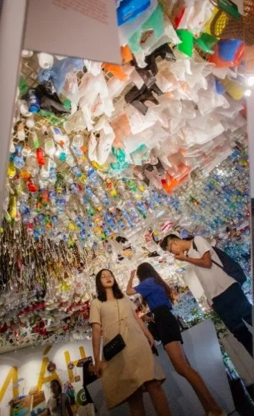 L’exposition jetait un regard nouveau sur les modes de production et de consommation à travers des installations sensorielles et innovantes. La plus emblématique prenait la forme d'une vague de déchets matérialisant 6 mois de déchets jetés par une famille de 4 personnes, déferlant au-dessus des visiteurs.