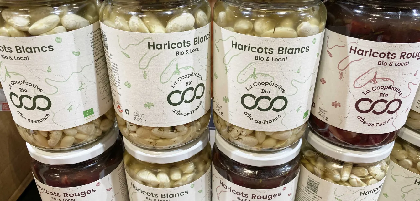 Sur un total de 7.000 hectares de terres, les sociétaires de la coopérative Bio d’Île-de-France produisent donc des fruits et légumes qui représentent la part la plus importante des ventes. Mais aussi des produits d’épicerie comme de la farine, des légumes secs, des bocaux de légumineuses, du miel, de l’huile, du cidre, du jus de pomme ou encore des pâtes, etc. ainsi que des produits frais tels que fromages, yaourts, œufs et viande.