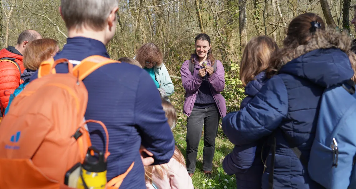 Avec cette invitation, Flora Delalande commence la balade consacrée aux plantes sauvages comestibles et médicinales. Pendant 2 heures, une vingtaine de promeneurs vont sillonner avec elle le Bois de Champ Garnier, un espace forestier du Parc naturel régional de la Haute Vallée de Chevreuse (78). Le groupe s’arrête aux abords d’un parterre jaune vif. « Chaque pissenlit est une inflorescence, c’est-à-dire un ensemble de fleurs. Une fois fécondées, les fleurs se fanent et se transforment en fruits qui contiennent des graines. Elles vont être emportées par le vent, puis germer pour donner naissance à de nouveaux pissenlits », explique Flora Delalande. Annonciatrices du printemps, ces plantes peuvent être mangées en salade, cuisinées en gelée et utilisées pour décorer les assiettes d’une touche dorée.
