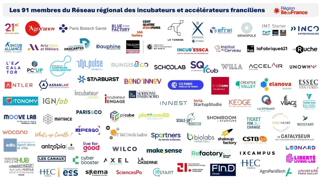 Start-up Décembre 2024 marque le premier anniversaire du Réseau régional des incubateurs et accélérateurs franciliens. Un ensemble qui regroupe 91 structures au service des start-up et porteurs de projets franciliens.