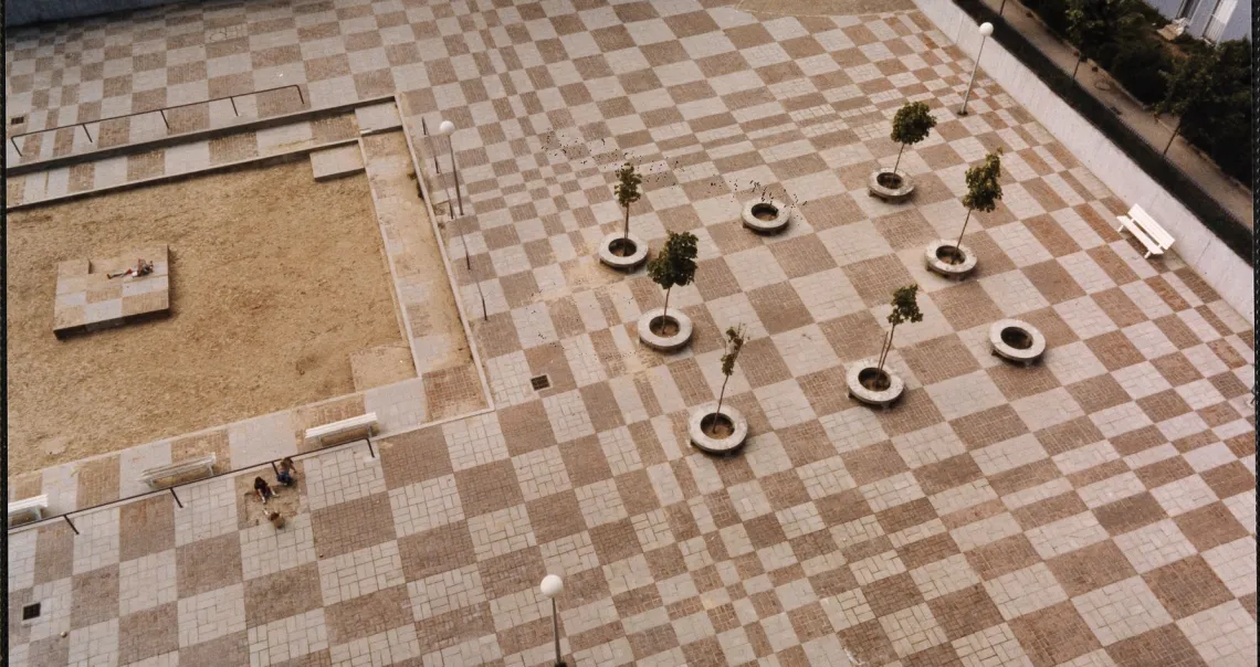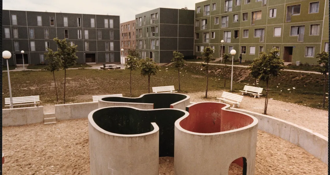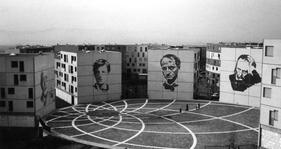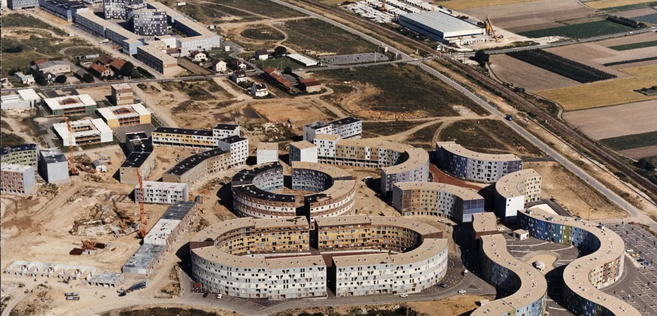 Architecture En 1964, l’architecte Émile Aillaud est choisi pour travailler à l’implantation d’un important ensemble de logements dans une boucle de la Seine située au-delà de Poissy, à proximité du pôle d’attraction que représente la future ville nouvelle de Cergy-Pontoise.
