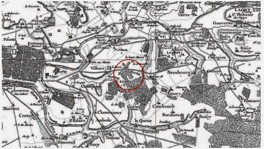 L'une des plus anciennes représentations cartographiques du bois Saint-Martin est attestée sur celle de Cassini vers 1750. Il s’agit de la première carte topographique et géométrique établie à l'échelle du royaume de France dans son ensemble.