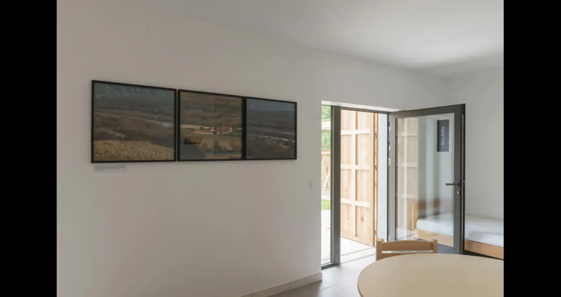 Vous êtes ici dans le pavillon d’entrée des sablières, premier point d’extraction des sables de la boucle de Moisson, aménagé en gîte communal grâce au soutien du Département des Yvelines et de la Région Île-de-France. Les ressources patrimoniales des communes de la boucle - Freneuse, Méricourt, Moisson, Mousseaux, Rolleboise, Bonnières - sont aujourd’hui disponibles pour les randonneurs sous forme de promenade à partir du diagnostic élaboré par le CAUE des Yvelines et le service Patrimoines et Inventaire de la Région Île-de-France. Ils ont souhaité ici valoriser le patrimoine « hors les livres » et « sur les murs » en le rendant accessible à loisir. Les photos de Laurent Kruszyk, exposées dans les chambres et les espaces commun épousent les creux et les pleins de l’architecture comme autant de fenêtres sur le paysage. Elles invitent le visiteur à découvrir et à comprendre ce territoire.
