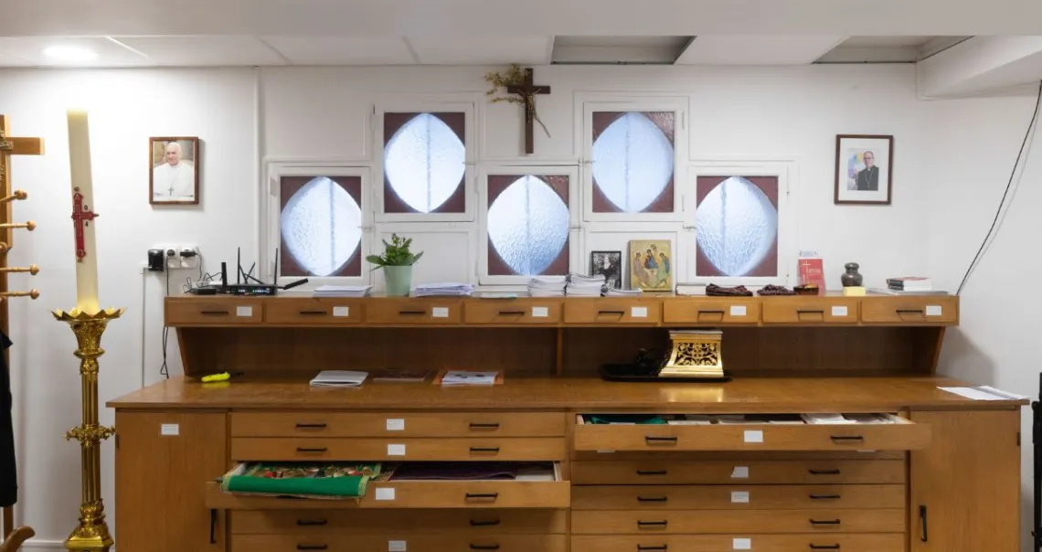Les cartons ont été dessinés par Léon (dit Claude) Blanchet et leur réalisation est l’œuvre de différents ateliers d'Île-de-France.