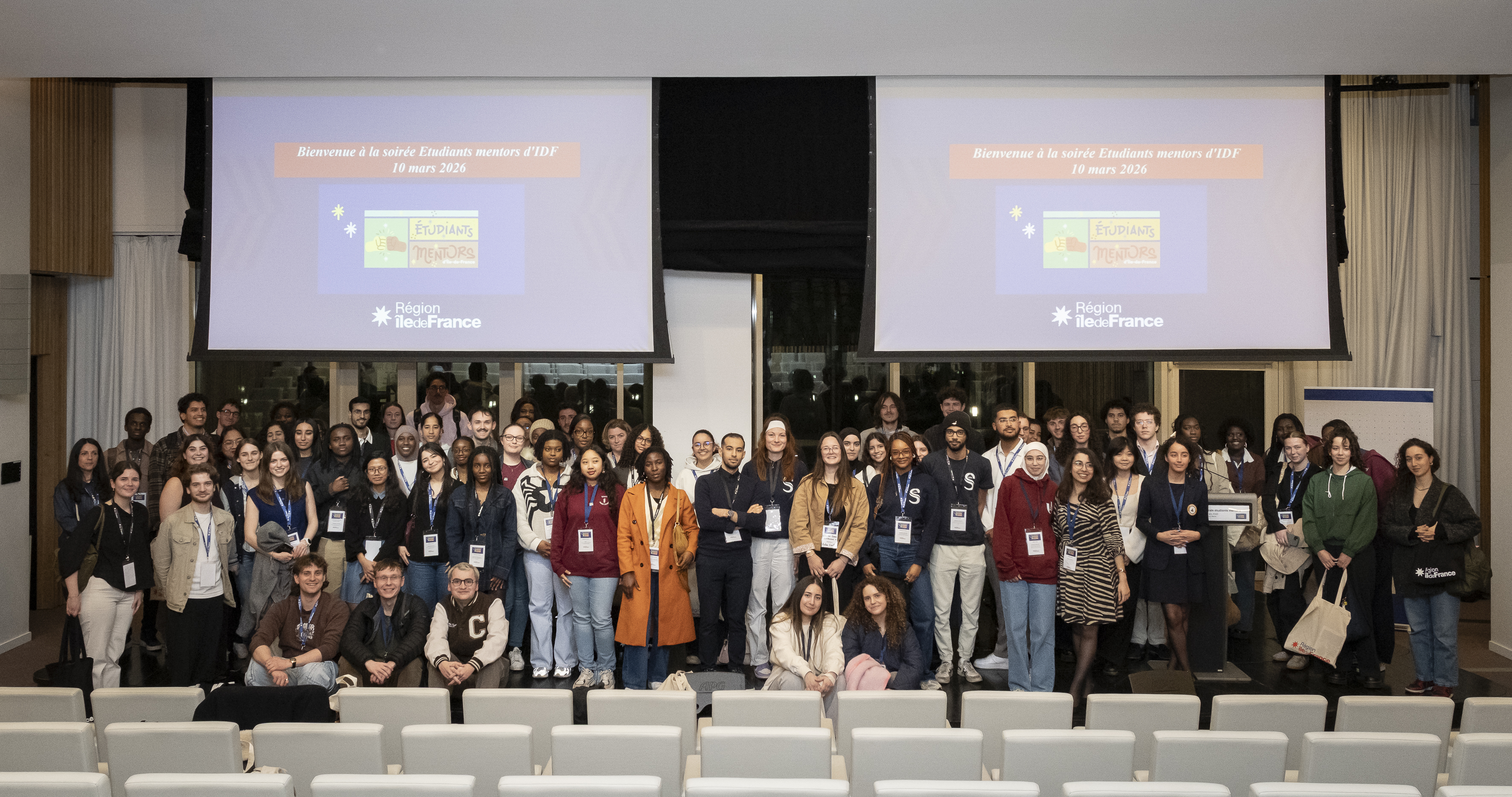 Réunis dans l’auditorium de la Région, ils sont plusieurs dizaines à s’être déplacés le 10 mars 2026 pour une soirée organisée en leur honneur. Eux, ce sont les étudiants mentors de la Région Île-de-France.