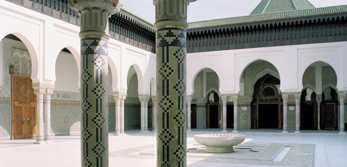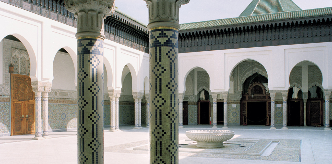 La réalisation de la grande mosquée de Paris en 1926, en hommage aux nombreux musulmans morts pour la France au cours de la Grande Guerre, constitue un chef-d’œuvre d’architecture islamique, longtemps resté sans lendemain. Élément majeur d’un institut musulman comprenant également une bibliothèque et une salle de conférences, la mosquée déploie un parti conforme aux grands principes de l’architecture islamique tant par son opacité extérieure que par son programme complet et son parement intérieur de mosaïques. La plupart des mosquées franciliennes érigées à la fin du siècle (Évry, 1994) reprennent aussi bien ce programme complexe qu’une austère monumentalité externe, réservant aux espaces intérieurs un décor plus traditionnel.