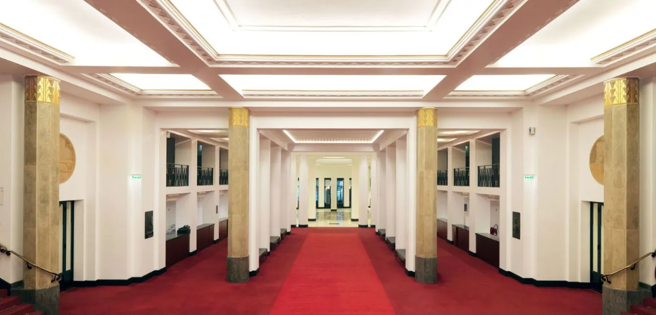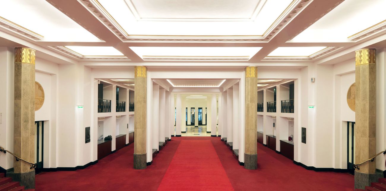 Hors de la capitale, la pensée utopiste et progressiste de l’entre-deux-guerres qui préside, notamment, à la création des cités-jardins franciliennes, ambitionne d’offrir des équipements culturels nécessaires à l’épanouissement des populations de ces nouveaux espaces urbains. Hôtels de ville et centres administratifs se multiplient, conçus comme de véritables agoras où la population est invitée à s’exprimer et où le pouvoir local s’incarne dans des bâtiments majestueux. De nombreuses salles des fêtes voient ainsi le jour, conçues bien souvent comme élément central et pivot de ces édifices. Destinées à accueillir concerts, spectacles vivants, conférences ou encore bals populaires, elles constituent également une vitrine du pouvoir politique que l’architecture sert avec faste, s’inscrivant en cela dans la longue tradition des espaces d’apparat.