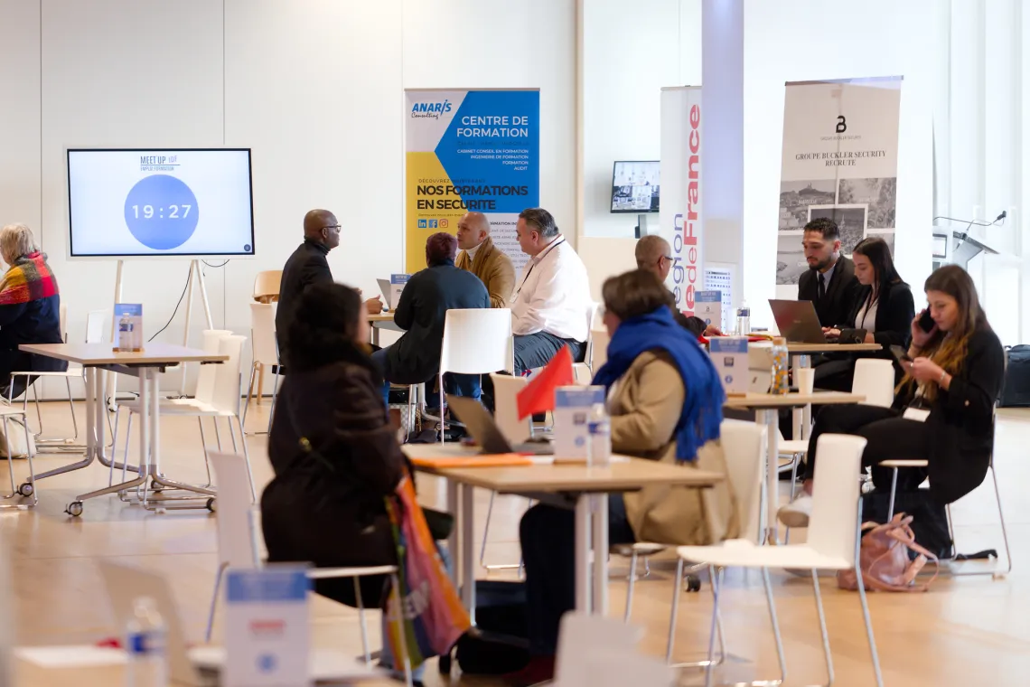 Lancés en 2021, les Meet’Up IDF Emploi Formation de la Région permettent d'établir un lien entre des entreprises qui recrutent, des organismes de formation et des demandeurs d’emploi n'ayant pas le bac.