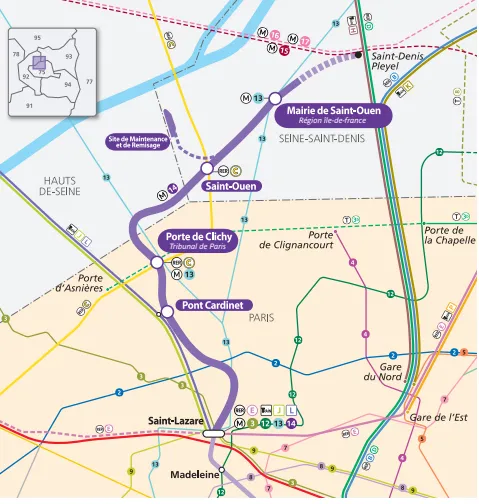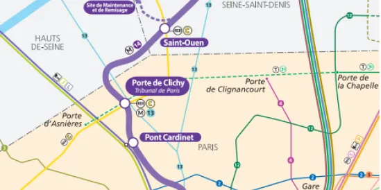 Avec ce prolongement, la ligne 14 traverse désormais le 17e arrondissement de Paris, Clichy-la Garenne (92) et Saint-Ouen (93). Elle dessert ainsi des quartiers en plein développement, qui représentent 96.000 habitants et 72.000 emplois :