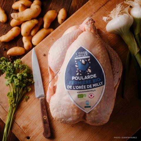 - La Ferme de l’Orée de Milly, à Milly-la-Forêt (91) dans le Gâtinais, par exemple propose des volailles bio élevées en plein air dès le premier jour et pendant 3 à 4 mois. Leur chair savoureuse et leur peau croustillante raviront vos convives.