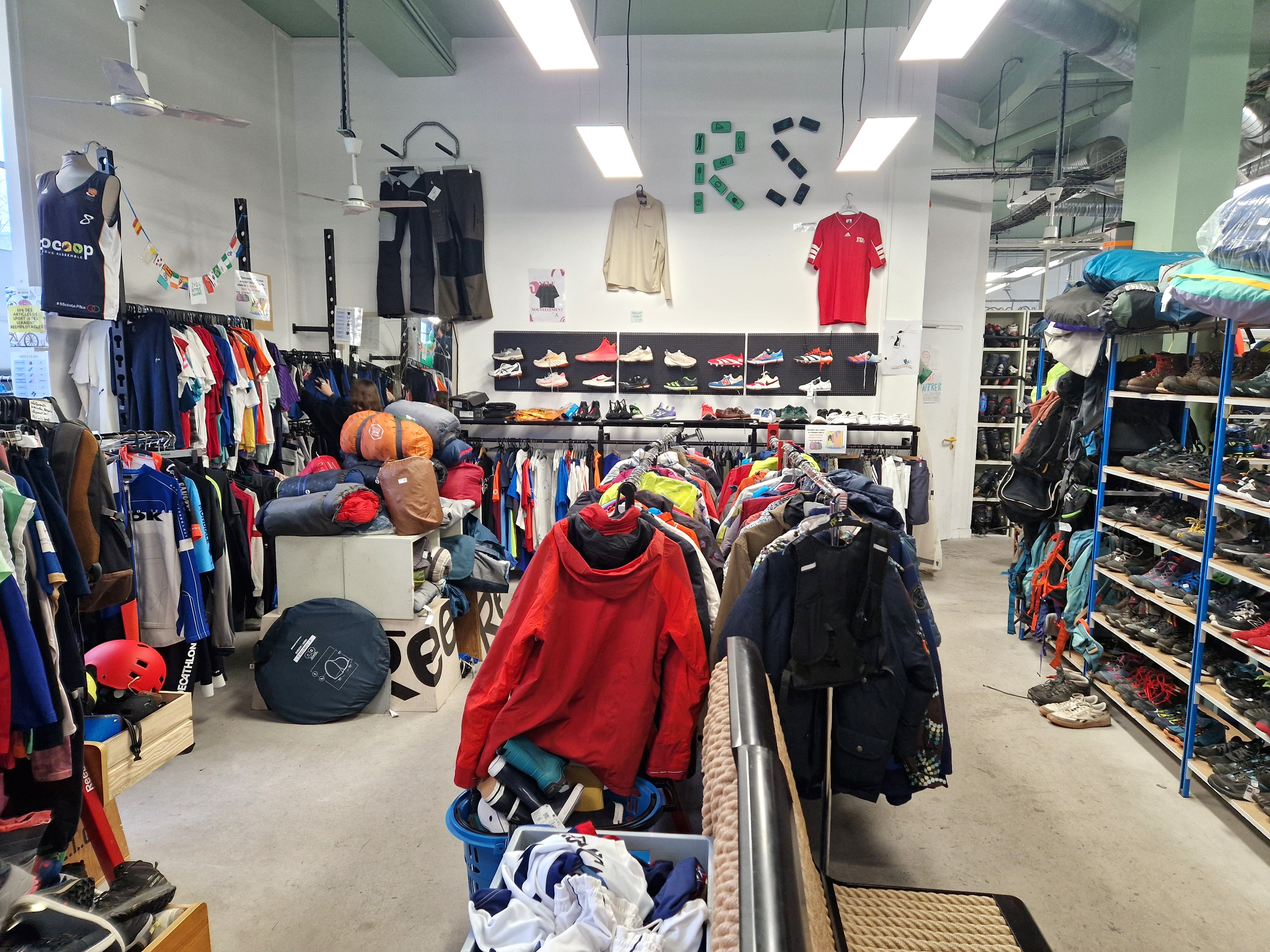 Responsable du site de la Recyclerie du Sport de Paris Bessières (17e), Timothée nous en dit plus : « Nous proposons ici aux adhérents une boutique avec de nombreux articles de seconde main et un atelier de réparation de vélos. Nous avons à peu près tous les types d’articles, comme des vêtements, des chaussures, et bien-sûr les équipements spécifiques à chaque discipline comme des raquettes, des ballons, des vélos, des tapis de sol ou des gants de boxes... Nous menons également des activités de sensibilisation à la réduction des déchets en général, et plus spécifiquement dans le milieu du sport. »