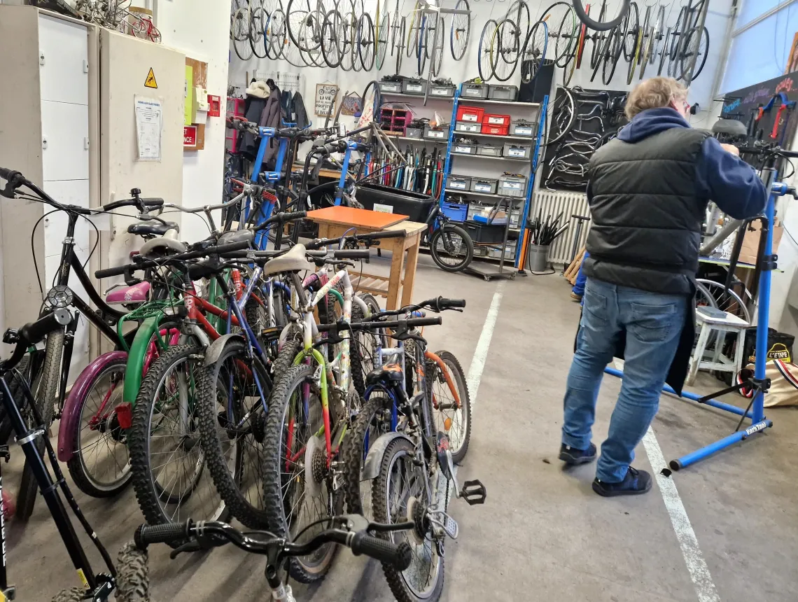 Les boutiques solidaires de la Recyclerie sportive disposent d'un atelier de réparation de vélos